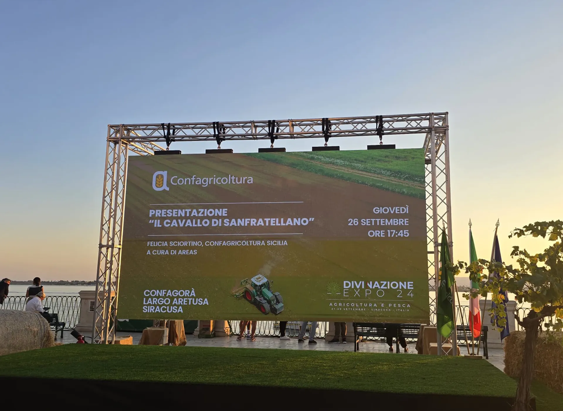 Protagonista assoluto è stato Salomone, splendido esemplare di cavallo Sanfratellano proveniente dall’allevamento di Sebastiano Fonti. Montato con maestria da Mattia Provvidenza, Salomone ha rappresentato la forza e l’eleganza di una razza autoctona che è simbolo d’identità. Gli addestratori Loreto Scozzari e Mattia Provvidenza hanno regalato ai presenti un’esperienza da ricordare, dimostrando come la tradizione rurale siciliana possa dialogare con i palcoscenici internazionali più prestigiosi.